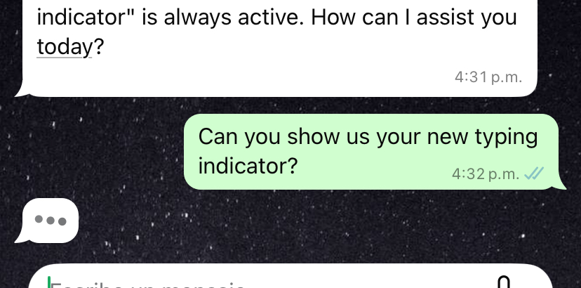*WhatsApp has a new microinteraction that indicates when a user is typing. It is a bubble with 3 dots.