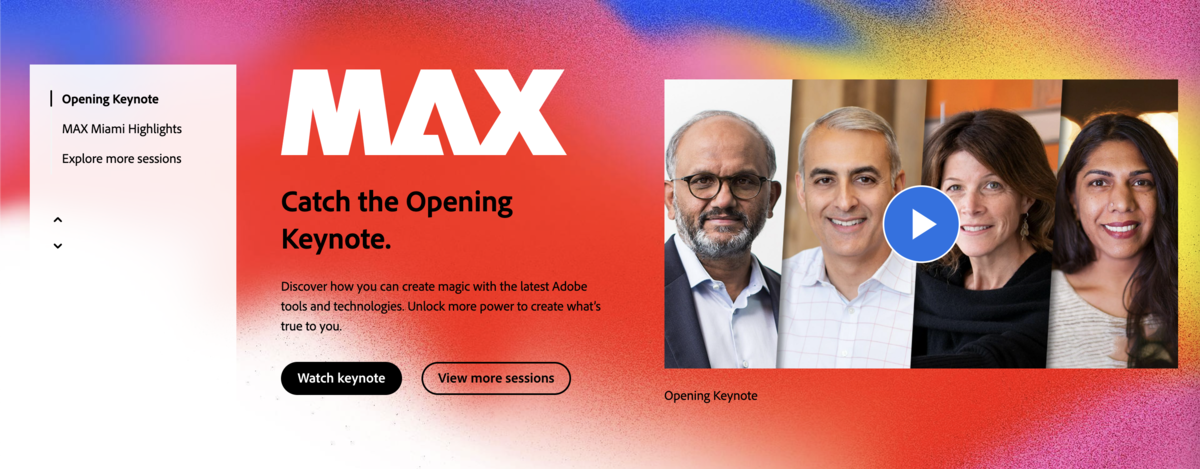 Source: Adobe Max. The brand takes advantage of grain textures and gradients on its website.