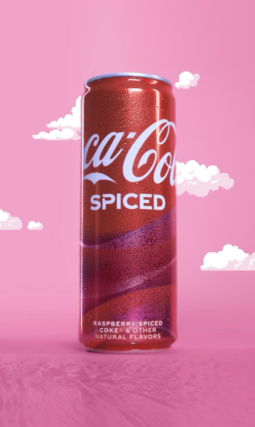 Source: Coca-Cola. Coca-Cola's new marketing campaigns embrace retro-futurism with '80s-inspired designs that mix 8-bit clouds with modern backgrounds.