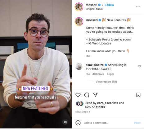 *Mosseri, head of Instagram, announced the platform's new tools.